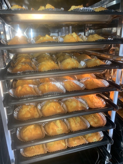 今日の給食は、肉うどん・温野菜・彩の国梨マフィン・牛乳でした。 梨マフィンは、地場産ウィークにちなんだ新メニューです。埼玉県産の梨をシロップ漬けしたものを混ぜ込んだメニューです。