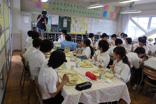 給食中にも、3年生の卒業アルバム用の写真を撮っていました。いい笑顔いただきました