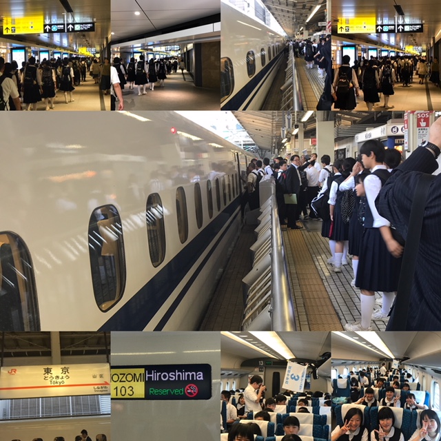 待機場所から移動して、いよいよ新幹線に乗車しました。修学旅行専用団体列車ではなく、一般車両で広島まで行きます。