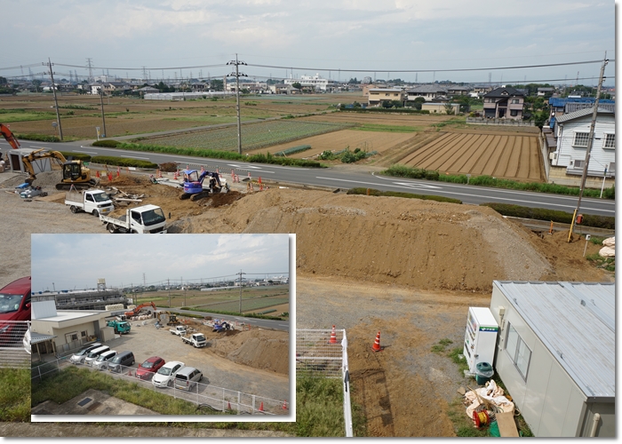 給食調理場が完成し4月から稼働していおり、現在、コスモス街道側に駐車場を整備する工事が行われています。併せて、旧岡部給食センターの取り壊し工事も並行して行われています。