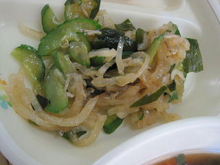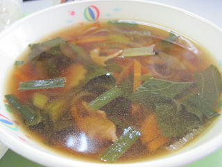 肉うどん 牛乳 オレンジパンケーキ 大根とじゃこのサラダ チーズ  今日は深谷市でとれた大根や小松菜・ねぎ を使って、うどん汁やサラダを作りました。 肉は臭みをとるしょうがで下味をして、 具には小松菜や玉ねぎ・にんじん・ねぎ・ にら・なるとを加えたうどんに仕上げました。 オレンジパンケーキはにんじんを細かく刻み・ オレンジジュースと卵・蒸しパンミックスで 生地を作り焼きました。オレンジの香りが とてもよいケーキです。生徒もすごい・・・ いい香りと言っていました。  |  |