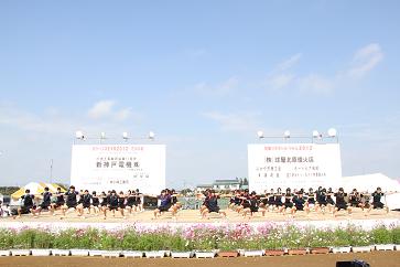 朝方の雨も心配されましたが、岡中吹奏楽部とOKB48が出演することは、絶好の天気となりました。岡中吹奏楽部の人気は高く、たくさんの方が、応援などに集まってくれました。