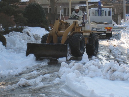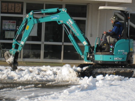 記録的な大雪になった週末、生徒の安全のために本校の職員だけで無くショベルカーなどの重機で校地内や周辺道路の除雪作業をして頂きました。