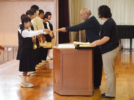 3月23日(月)は6年生の修了式でした。式の前に、6箇年皆勤賞の表彰です。今年は2名の児童が受賞しました。大変すばらしいことです。校歌斉唱では、伴奏は児童、指揮は担任が行い、美しく元気な歌声を響かせました。修了証授与では、校長先生から6年生一人一人に...