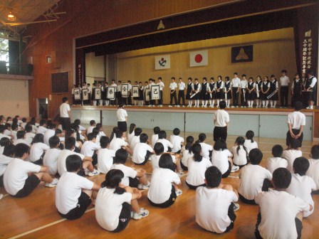 本日、放課後に学校総合体育大会に向けて「壮行会」が行われました。