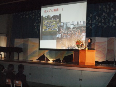 酒井さんは現在、大学3年生でソフトボール部に所属しており、将来の夢は実業団でプレーすることだそうです。講演の中に、『自分が夢に向かって頑張れるのは周りの協力があるからであり、その人達へ感謝の気持ちを忘れずに頑張ることが大切。』と話してくれました。