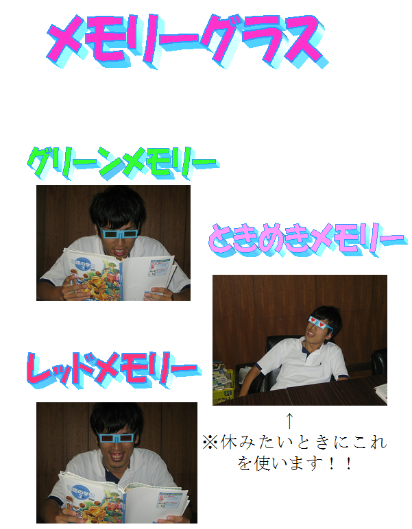 参考書などに付いている赤いシートがこのメガネを付ける必要なくなります。