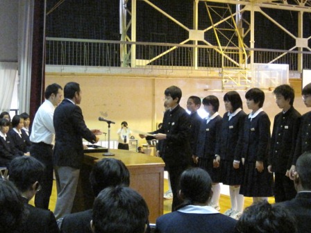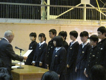 旧生徒会、旧専門委員長には修了書、新生徒会、新専門委員長には任命書が手渡されました。