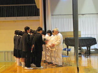 生徒が心をこめて書いた作文やお花をプレゼントしました。