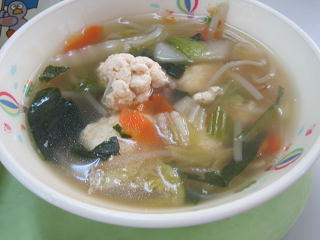 【今日の献立】 牛乳 サンマーメン チョコバナナパンケーキ 海藻サラダ サンマーメンとは神奈川県のご当地ラーメンです! サン(生)は新鮮でシャキシャキした、 マー(馬)は上にのせる という意味があり、 漢字では『生馬麺』と書きます。 とろみのある汁...