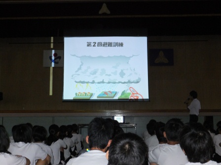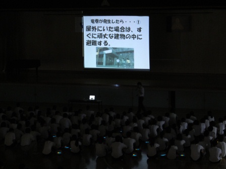 今回は学校区内での竜巻発生を想定した避難訓練を行いました。