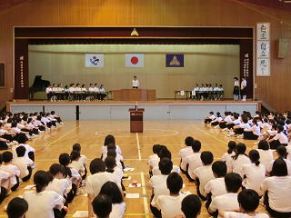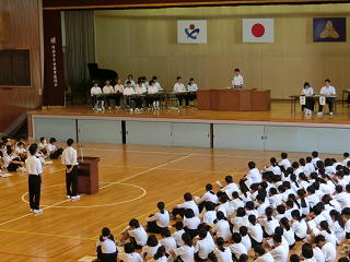 本日6時間目に生徒総会が開かれました。岡部中学校をさらにより良くしていこうという気持ちが熱い答弁に表れていました。