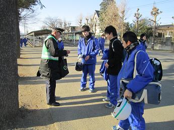 特に注意してほしいのは、①一時停止(見通しの悪いところでは必ず止まれ、一時不停止による事故がもっとも多い。ドライバーから見ると急な飛び出しになり、ブレーキをかけても間に合わない)、②並進。車のドライバーから見ると横に広がっていて危ない、接触事故も多く発生している。③夜間無灯火。暗くなって車のドライバーからは自転車が確認しくくい。薄暮時から点灯しましょう。また、今回もらった反射板などをつけるとよいでしょう。