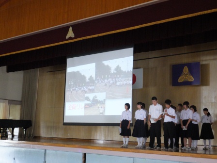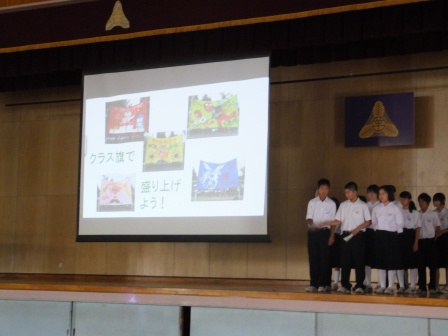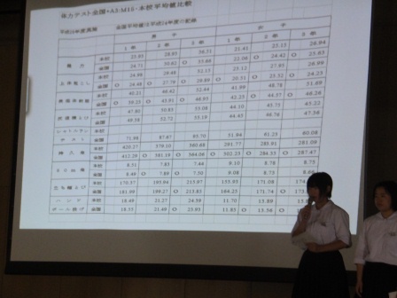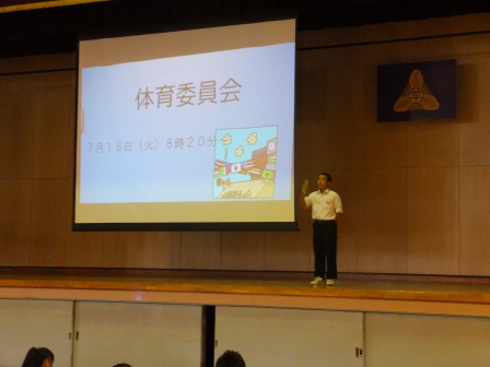 1学期に行われた体力テストの結果発表と2学期に行われる体育祭の説明を行ってくれました。