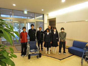 3月13日(木)の放課後、本校福祉委員会が岡部中学校区内にある施設止揚の杜様に車いす1台を贈らせていただきました。
