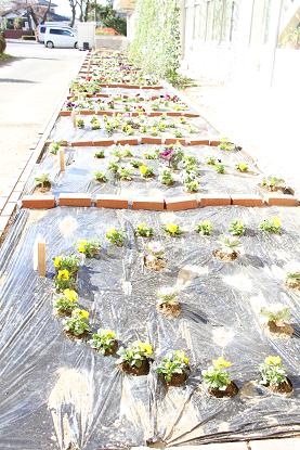 全学級の花壇が完成しました。 3年3組のデザインは?だれかの顔?