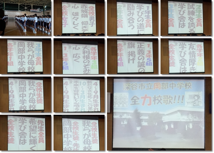 自分の学校の校歌に誇りが持てるよう、大きな声とともに、自分自身の心も込めて、岡部中学校の校歌を歌い上げましょう!